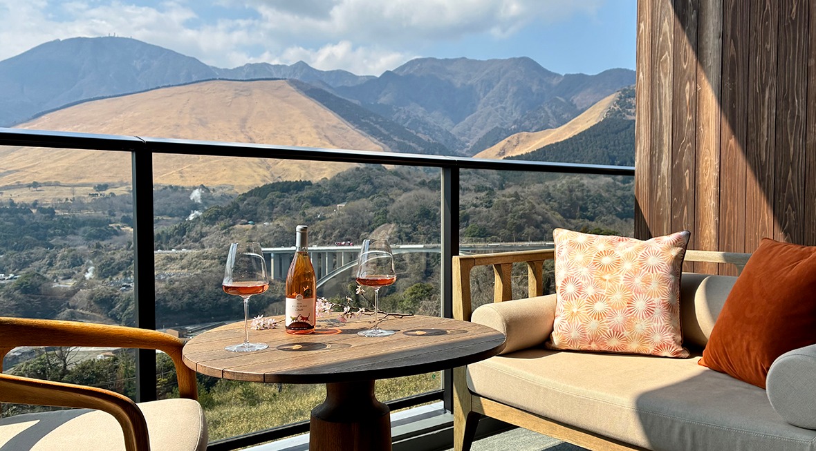 特典のソムリエセレクトロゼワインは、春風を心地よく感じる客室テラスで味わうのもおすすめです。